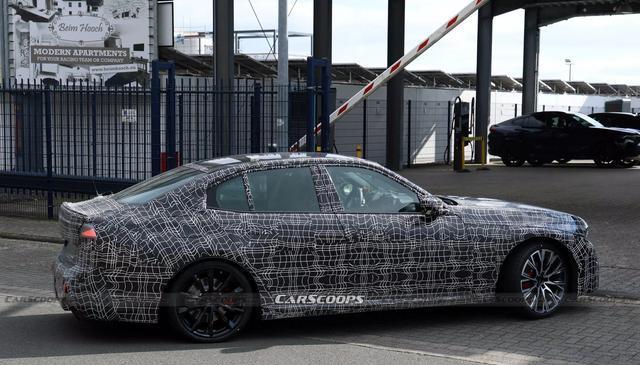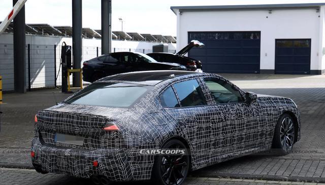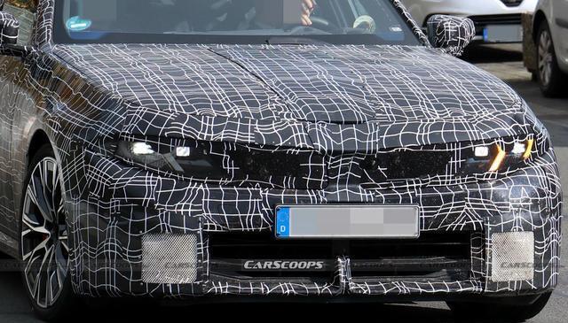 具体来看,前脸部分突出的车鼻有着独特的扁平双肾格栅及特殊三角形扁平灯组,两者融为一体,形成特殊造型,令人印象深刻。凹凸有致的前机盖也在伪装之下依稀可见,和i3相同,前保险杠部分则是夸张的多段式镂空装饰,承担了主要的进气和散热任务,增强了战斗的属性。