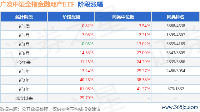 从业绩表现来看,广发中证全指金融地产ETF基金过去一年净值涨幅为27.69%,在同类基金中排名386/2216,同类基金过去一年净值涨幅中位数为11.09%。而基金过去一年的最大回撤为-14.23%,成立以来的最大回撤为-43.26%。