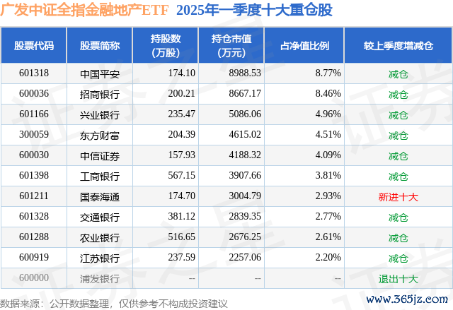 本站消息,日前广发中证全指金融地产ETF基金公布一季报华信投资,2025年一季度最新规模10.24亿元,季度净值涨幅为-1.72%。