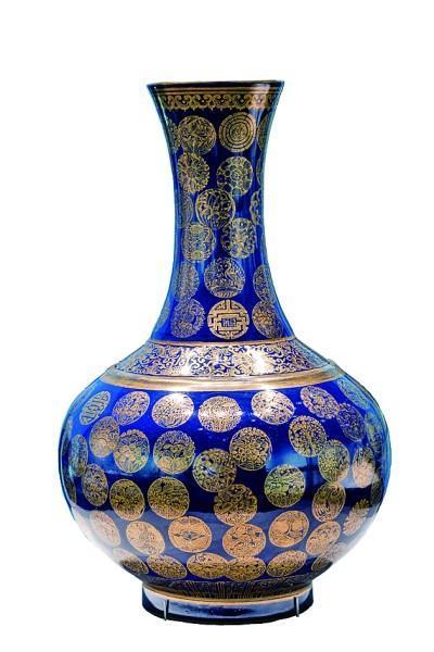 图为清代宣统款霁蓝描金团花瓶智赢策略。 金沙博物馆供图