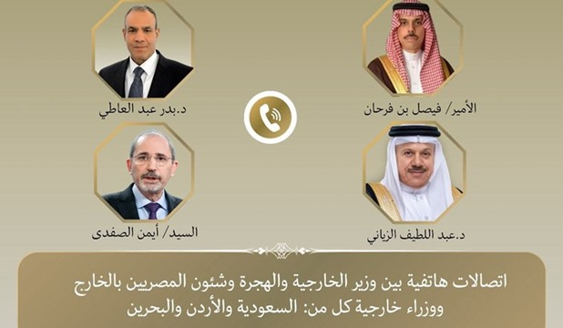 埃及、沙特、约旦及巴林外长通话 讨论伊以冲突问题各方一致强调广瑞网 ,必须通过政治途径解决危机、努力缓和紧张局势、避免该地区陷入无休止的暴力循环。